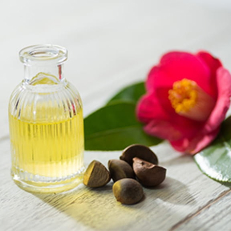 島に自生する椿を使って江戸時代から生産されている。髪や肌への美容効果がよく知られているが、食用にも。